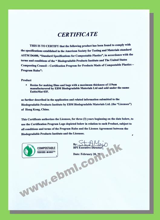 compostable bags, HS2001, EN13432, ASTM D6400, biodegradable garbage bags,